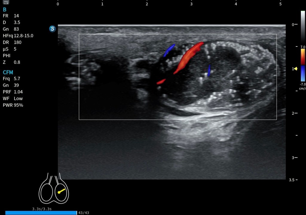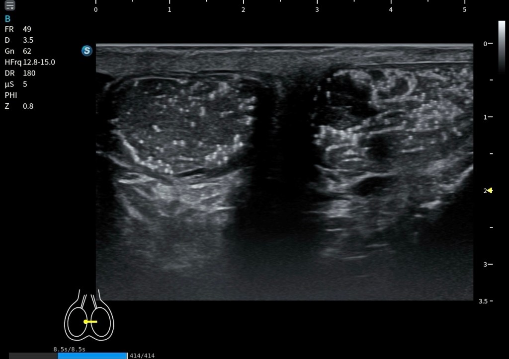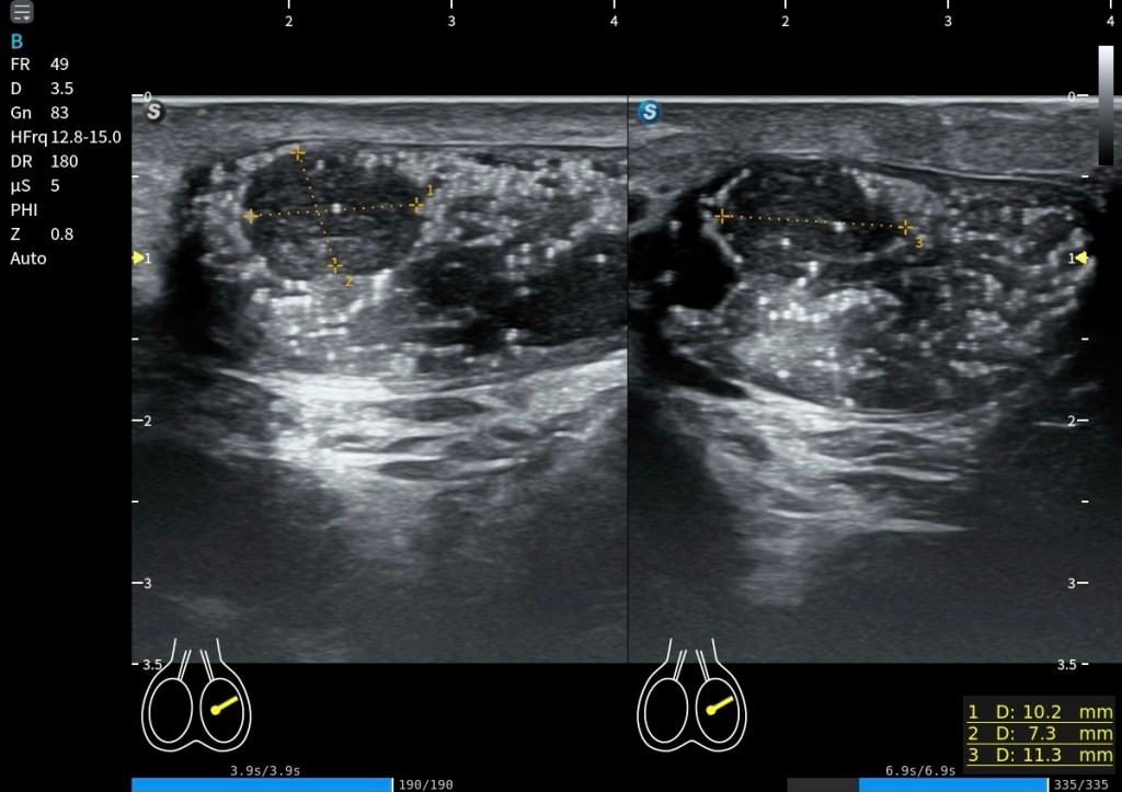 Fue un hallazgo casual, pero muy bien demostrado en la última imagen del estudio. Esta coexistencia entre lesiones quísticas y lesiones sólidas hiperecogénicas no había quedado inicialmente descritas y pone en valor la importancia de complementar la exploración.