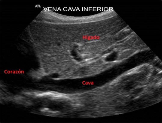 The Vena Cava Inferior enters the heart with «dirty» blood and that is the moment that we have to photograph. Ultrasound is anechoic, elongated, slightly bulging and physically depressed by compression. In this section we can see the arrival of the Left Suprahepatic Vein that in some cases we can remove it included in this section, but I have preferred to study it in the context of the ultrasound study of the Suprahepatic. We can see that this vein is in intimate contact with the Liver. We will also observe in transverse, but as I said before, for the protocol we are left with these two images in longitudinal. They are easy to get, sometimes we will achieve it with deep inspiration from the patient, but other times, and especially the Cava, we will see it much better in expiration.