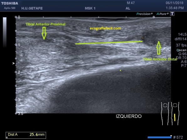 - Cabo proximal del tibial anterior en corte longitudinal.