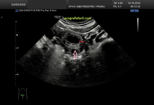 Empezaremos siempre estudiando la Vejiga, la razón es que con el frío del gel lo más normal es que la/el peque se haga pis y no podamos estudiarla, en muchos estudios vamos a ver como la vejiga se vacía en directo…por eso es imprescindible empezar por ahí.