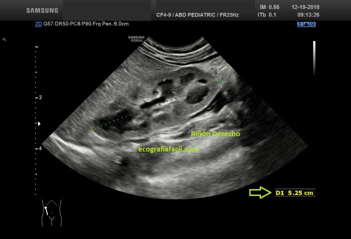 In the smallest patients, even in very thin adolescents and adults can be accessed from the back, paralumbar, deserves great results, some babies are more collaborators in prone position, we can entertain while we work … The right kidney, like Measured according to age, remember that we have to study the adrenal of both kidneys.