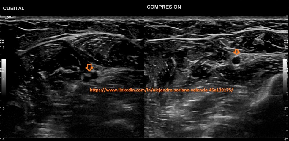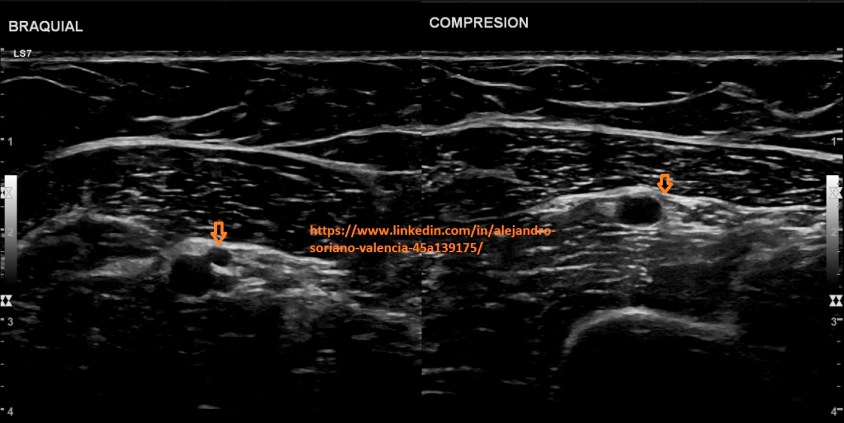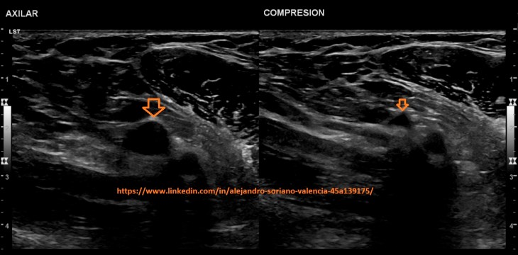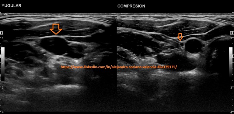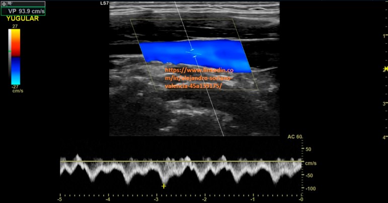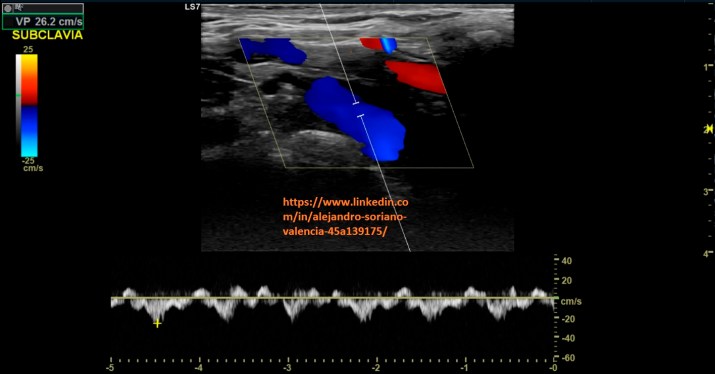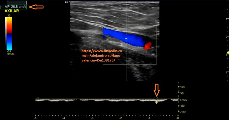 will become infraclavicular. It is a vessel with very difficult access, so we are not able to make transversal cuts and we will not be able to compress properly. As we saw in post no. 105, the veins have a monophasic pattern. Well, here we have two exceptions, and that is that, we will find a pulsating flow in the internal jugular and subclavian veins.