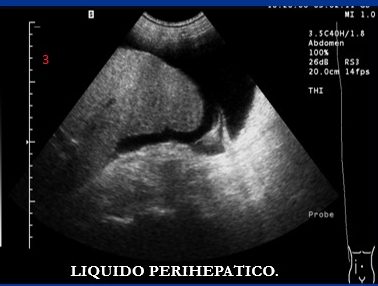 2.1.- Ascitis: Líquido anormalmente localizado en la cavidad abdominal, ecográficamente se verá anecoico y en función de su cantidad ocupará más o menos volumen, es suscepcible de paracentesis en el acto.