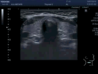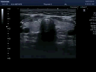 Of the points of conflict, mainly, we noticed the artifact in two, the nodule and the left carotid artery, «stained», more echogenic than normal, (fig1) when it should look anechoic as in figure 2. Yes, I know it is very subtle, but it is important that the degradation of the image however small can vary the diagnostic reliability, in this case the nodule of figure 1 is less clear than that of figure 2.