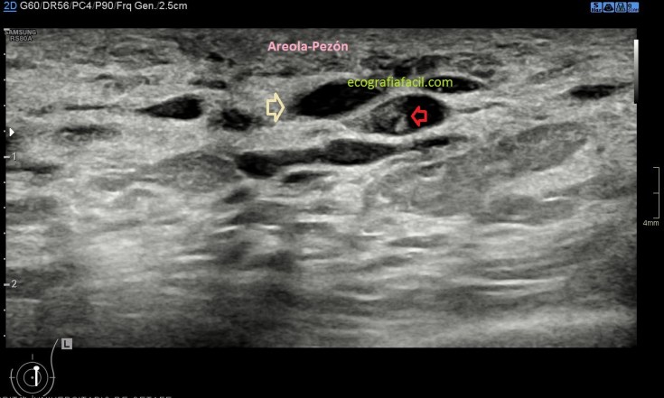 Normalmente aparecerán anecoicos, negros, por su presencia de líquido, líquido que en ocasiones puede manifestarse saliendo a través del pezón, se llama telorrea. Su aspecto puede ser variado, transparente, blanco, amarillento, verdoso, pero debemos preguntar o confirmar si ese líquido que sale a través del pezón es rojizo, sanguinolento, eso se denomina, telorragia, todos esto modelos deben ser consultados al médico y en función de su criterio, se analizará y estudiará esta figura patológica. Si el liquido secretado fuese leche y la paciente se encontrase fuera de un proceso de lactancia se denominará Galactorrea.