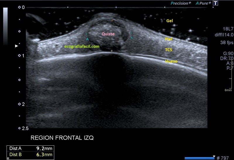 Otra presentación de bultomas que estudiamos a diario en cualquier sala de ecografía muscular, son los conocidos quistes. Estos quistes pueden adoptar varias apariencias, una de ellas son las que se conocen como quistes epidermoides y tienes, como te he comentado, una amplia amalgama de aspectos ecográficos.