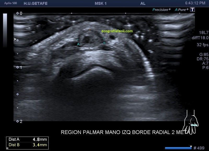 El paciente del caso que te expongo hoy como primer post del 2021 es un paciente de uno 40 años que nota desde hace un año un pequeño bultoma en la palma de la mano, en la región flexora en el eje largo del 2 dedo, a la altura de la articulación metacarpofalángica, ligeramente radial, viene referido del traumatólogo.