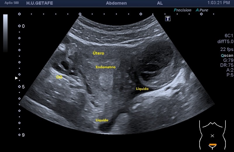 En este caso la paciente no venía por dolor en esa localización, con lo cual sería más raro patologías como embarazos ectópicos rotos, quiste hemorrágico roto, pero que habrá que valorar siempre clínicamente por el especialista.
