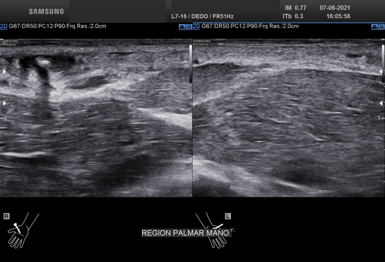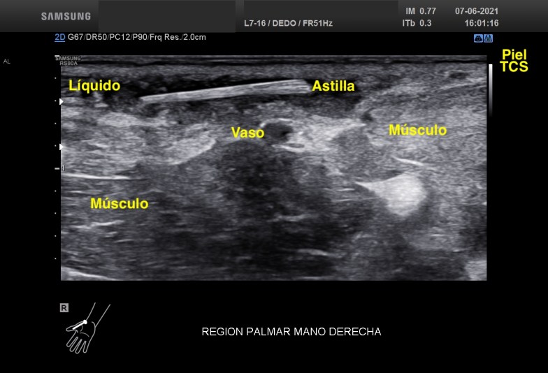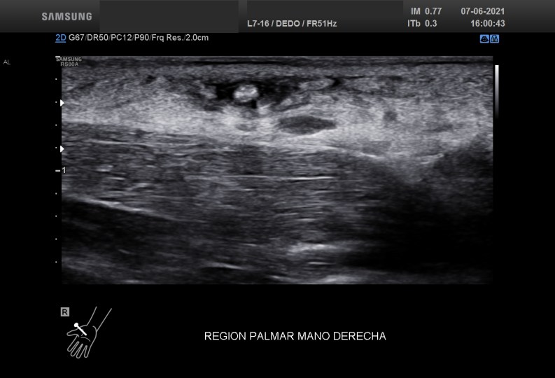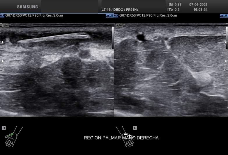 Con una sonda de ultra alta frecuencia realizo la exploración de dicha región objetivando estas imágenes que te muestro: