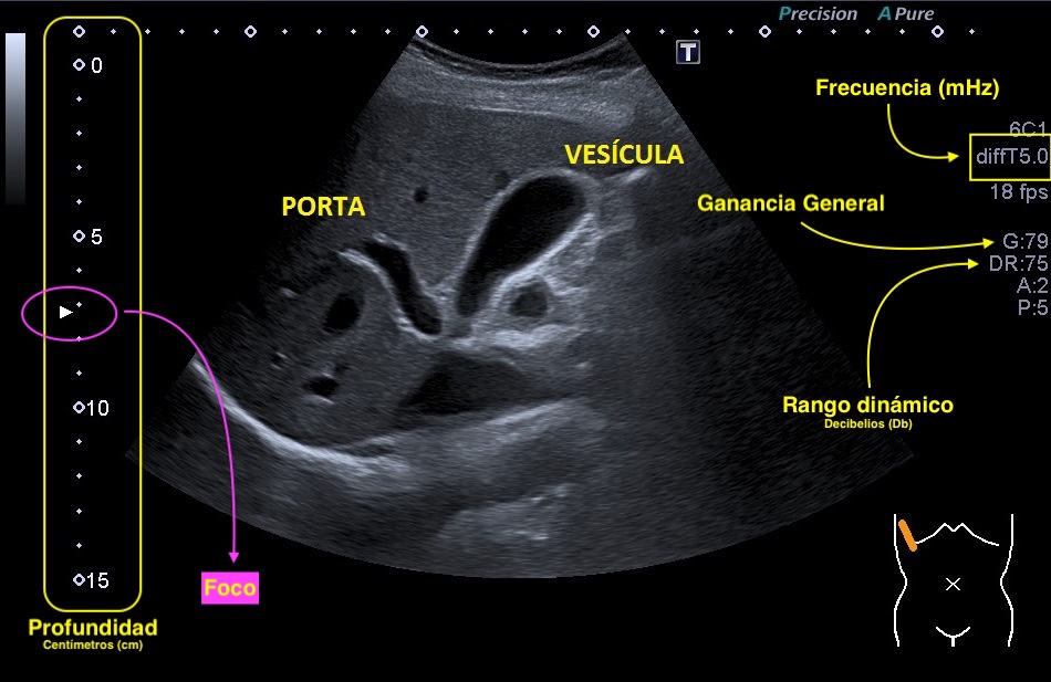 4. Foco: Ajuste ecográfico que no ofrece nitidez en la zona de posición del mismo. Debe estar a la altura del objeto de estudio o una línea inferior.