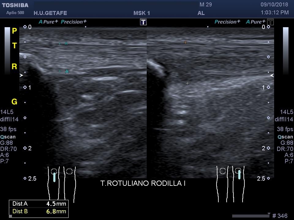 Otra cuestión que nos hace sospechar tendinopatía es el aumento de tamaño del tendón. Esto lo podemos valorar mediante una exploración comparativa con el lado sano.