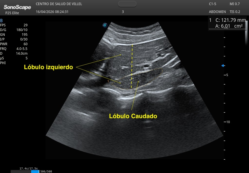 En ecografía hepática hay signos discretos que, aunque sencillos, encierran gran valor semiológico. Uno de ellos es la valoración del lóbulo caudado, una estructura a menudo poco enfatizada en la exploración rutinaria, pero que puede aportar información muy relevante cuando aprendemos a mirarla con atención.