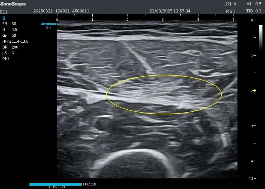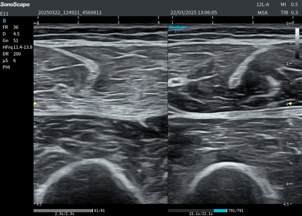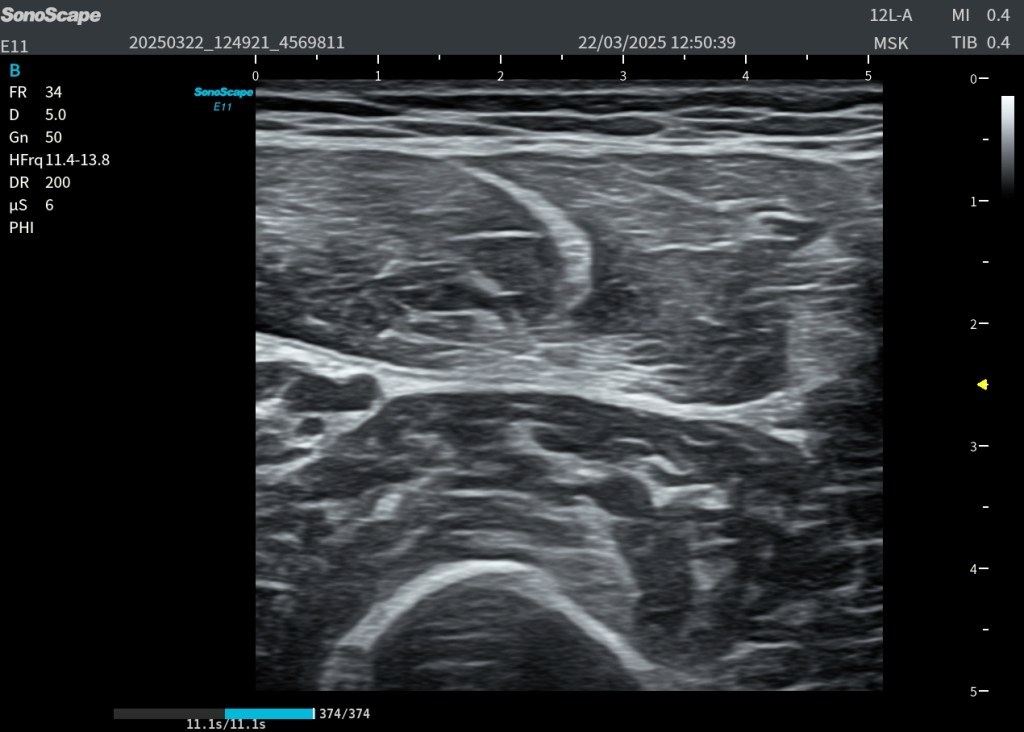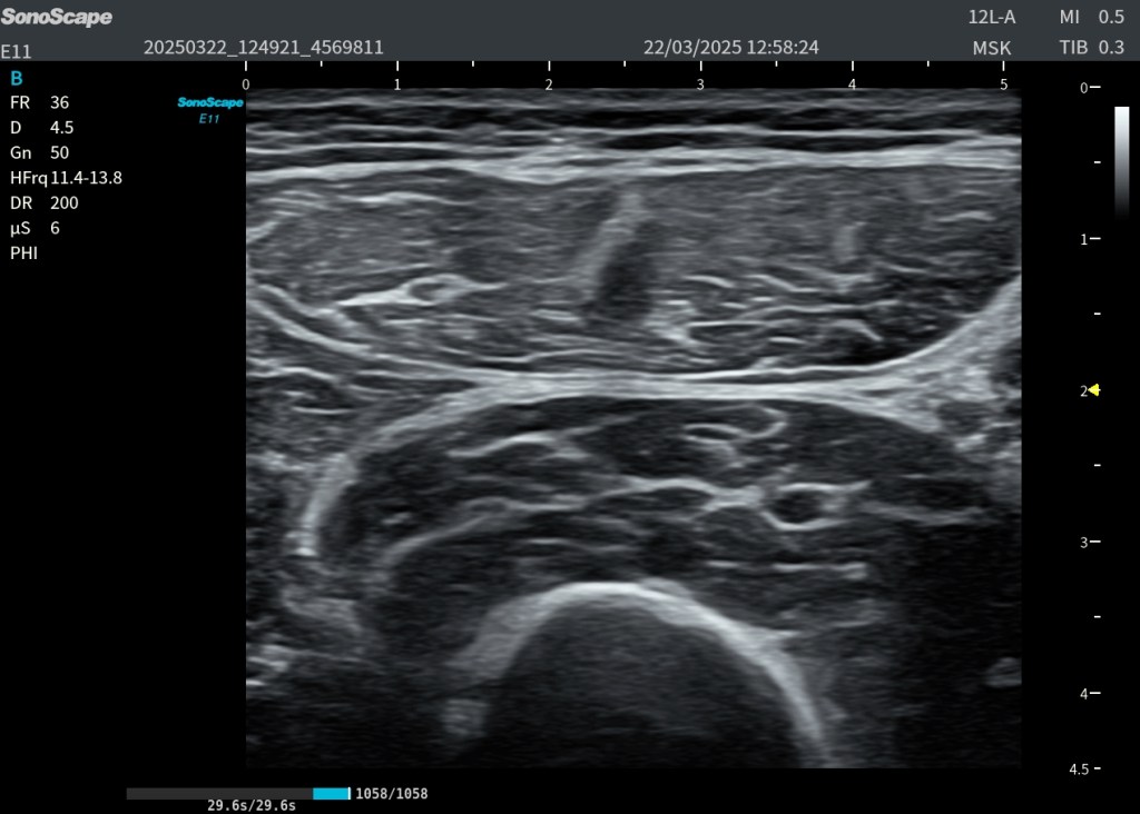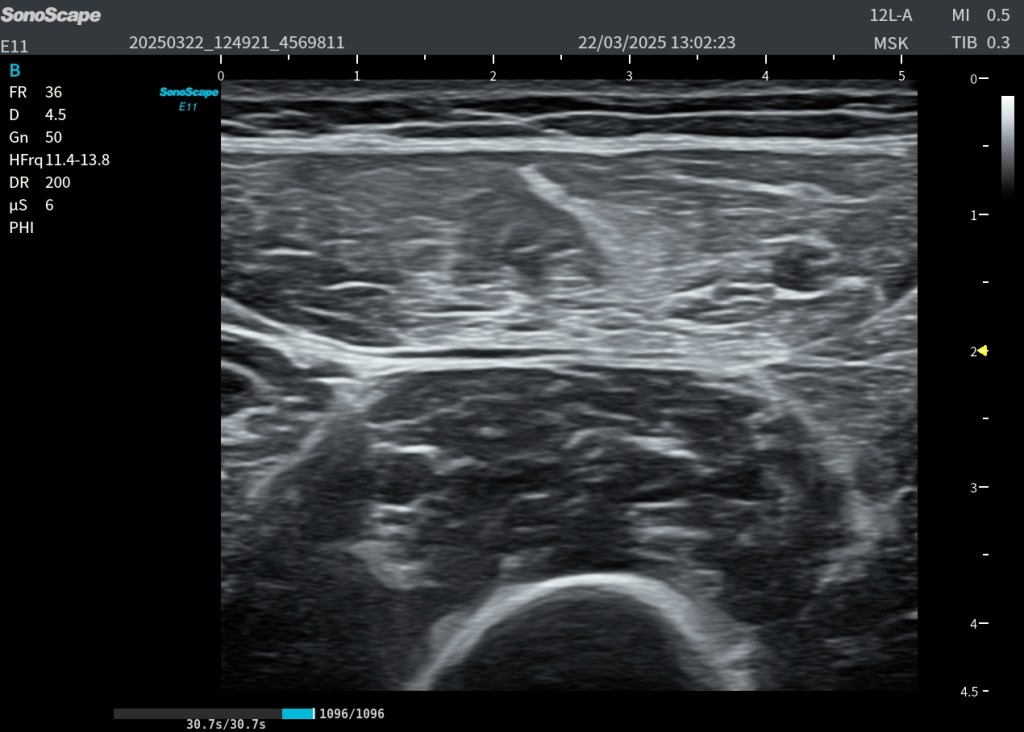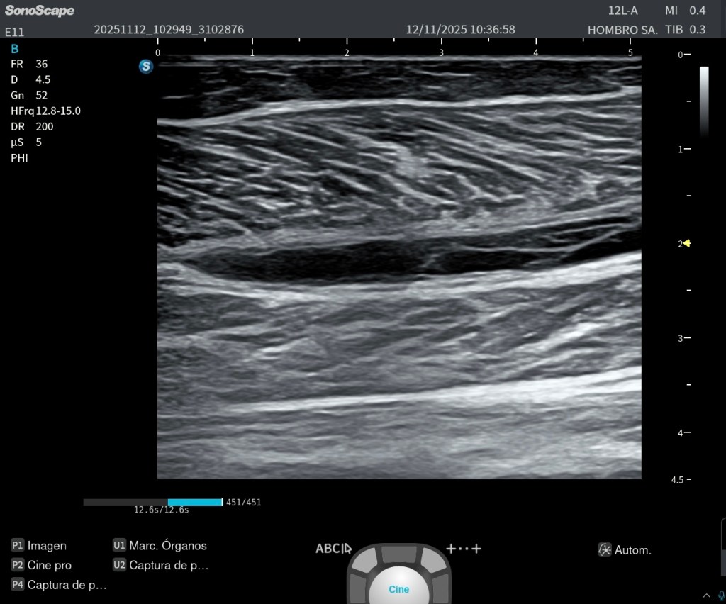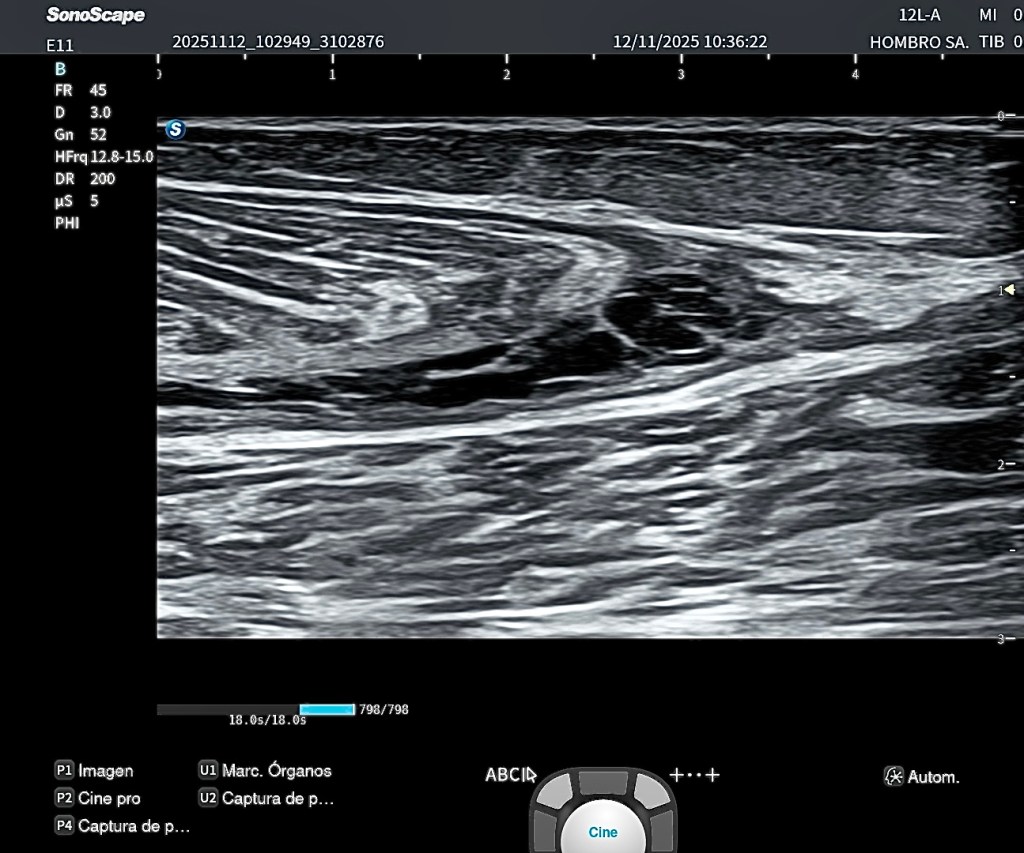 Esta imagen demuestra que la ecografía musculoesquelética no es solo una técnica de partes blandas superficiales, sino una herramienta capaz de mostrar anatomía profunda con gran calidad, cuando se combina experiencia, técnica y tecnología adecuada.