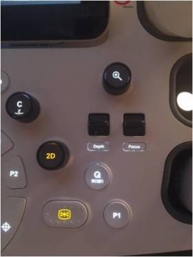 Well, this is easy to understand, but this type of distance is accompanied by the choice of ultrasound probes that give us the correct image for each study … when we talk about the types of transducers, we said that the linear ones were of high frequency and the low frequency convex. In the following link you can check this information. https://ecografiafacil.com/2018/01/01/11-tipos-de-transductores/ Therefore, for techniques that require shallow studies we will use high frequency probes and for deeper studies, we will use low frequency probes. This adjustment is usually located in the keypad to the right of the trackball and the freezer, can be identified in English as «Depth» and is usually placed next to the focus, another adjustment of great importance and we will study very soon. In some brands like Toshiba, this setting is integrated in the same button with the Zoom and should not be confused, in other brands such as Samsung, are separated as you can see in the photos shown below.