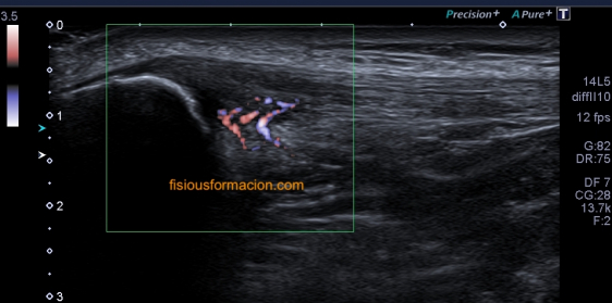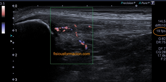 La exploración se lleva a cabo mediante una prestación de ecografía de partes blandas y se ejecuta con una sonda línea de alta frecuencia con preseteado de ecografía articular.