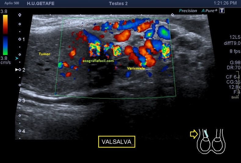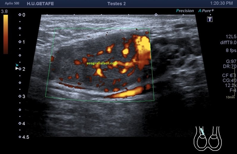 El estudio doppler arroja el hallazgo de un vaso importante que está alcanzando y nutriendo la región afectada. Puedes observar como es un vaso de alto flujo y de buen tamaño. No pude demostrar vascularización perimetral de la lesión.