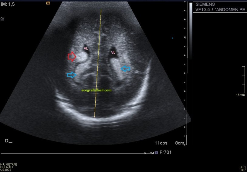 En este caso en una misma imagen tenemos dos ecoestructuras patológicas, la masa o el tumor y la lesión vascular de los vasos, también con ecoarquitecturas normales como la del testículo anteriormente explicado.