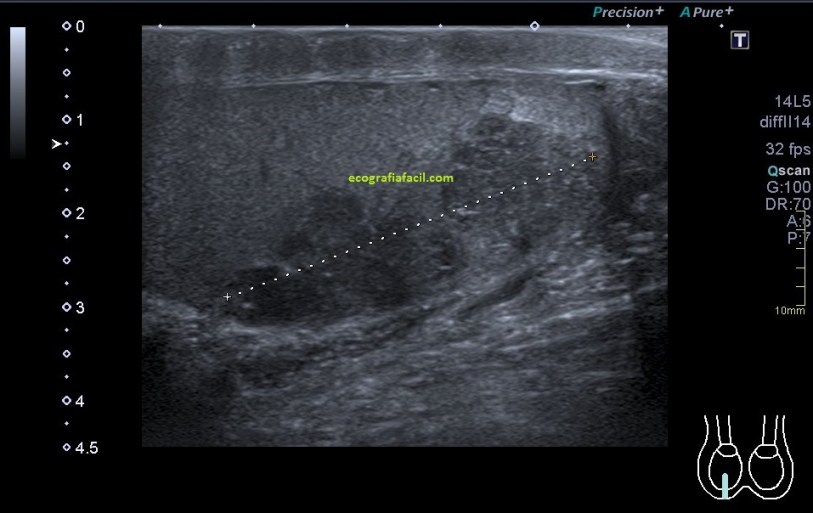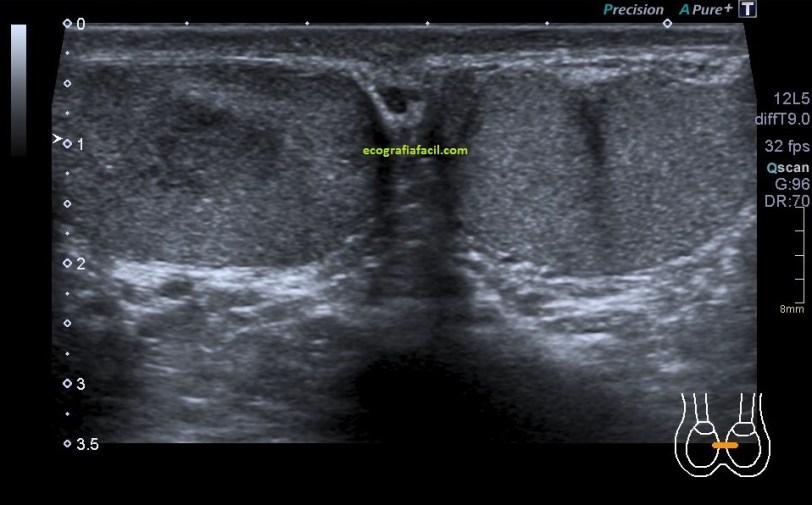 En el estudio comparativo, obligatorio en este protocolo, salvo cirugías, podemos comparar ambos testículos, es rara la afectación de ambos, así que podemos comparar normalidad y patología en el mismo estudio.