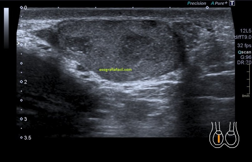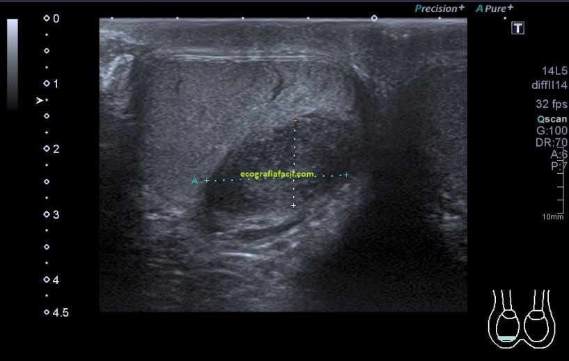 Tenemos que tener claro que el testículo debe verse hiperecogénico y homogéneo y partiendo de esta premisa, realizar los cortes necesarios estudiando la anatomía testicular, incluyendo siempre, testes, epidídimo, cubierta y paquete vascular, es decir, dentro de la bolsa escrotal no nos dejamos nada sin ver.