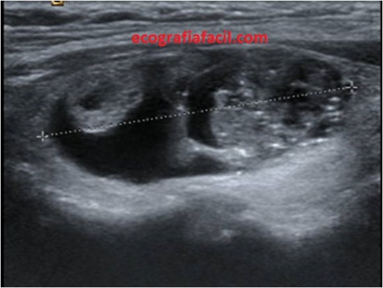 Sabía que os iba a llevar al huerto esa foto, era difícil, en una sola foto podía ocasionar la duda más que razonable que el nódulo hiperecogénico fuera sólido, pero realmente, los dos nódulos eran quistes.
