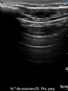 Como anotación final debemos tener en consideración que para este estudio es importante mantener índices mecánicos bajos, por el riesgo existente de sangrados por cavitación, sobre todo en esta estructura donde existen microburbujas de gas, principalmente en en los alveolos. Para ellos debemos disminuir la potencia de transmisión, usando el criterio ALARA, siglas en inglés de tan bajo como sea posible.