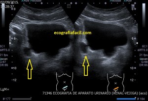 Ultrasound appears as a hyperechogenic mass, heterogeneous, attached to the wall in the form of «cauliflower» that when you put the color doppler you can see how it is vascularized, this vascularization is diagnostic for malignancy, generally.