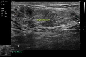 En abdomen en ocasiones la presión es necesaria, pacientes obesos con mala transmisión…igualmente en la ecografía de mama, si es muy voluminosa, a veces es necesario incrementar ligeramente esa presión, siempre pensando en que hay estructuras que son depresibles y podemos no verlas. En ocasiones esta presión será incómoda, incluso dolorosa para el/la paciente…debemos tenerlo muy en cuenta.