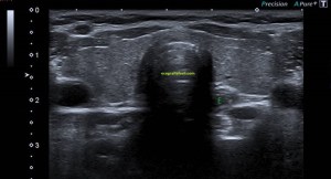 Comenzamos el estudio para visualizar la glándula tiroides de una forma global, como puedes ver en la imagen 1.