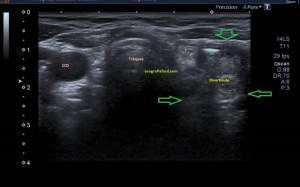 Importance of angulation: To obtain the maximum signal of bounced echoes it is essential to keep the perpendicular probe, eye! Not to the patient’s skin, but to the structure we are evaluating. In this way we will take advantage of all bounced echoes and eliminate our worst nightmare: Anisotropy. In photo 2 for the study of the anterior side of the shoulder in transverse you have two possibilities: which one would you stay with?