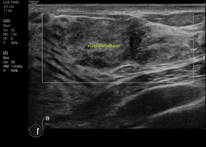 Cuando realizamos un protocolo de mama no sabe si vamos encontrarnos patología o no, si veremos quistes, fibroadenomas, si veremos uno o decenas de nódulos, si nos encontraremos algo distinto, algún tipo de lesión sospechosa de malignidad, siempre avisamos a la radióloga responsable advirtiendo del hallazgo, pero en ocasiones nos encontramos lesiones que son, permíteme la expresión, raras, es decir, no es la típica lesión benigna ni las maligna, pero la identificamos visualmente con una masa en el tejido mamario no normal.