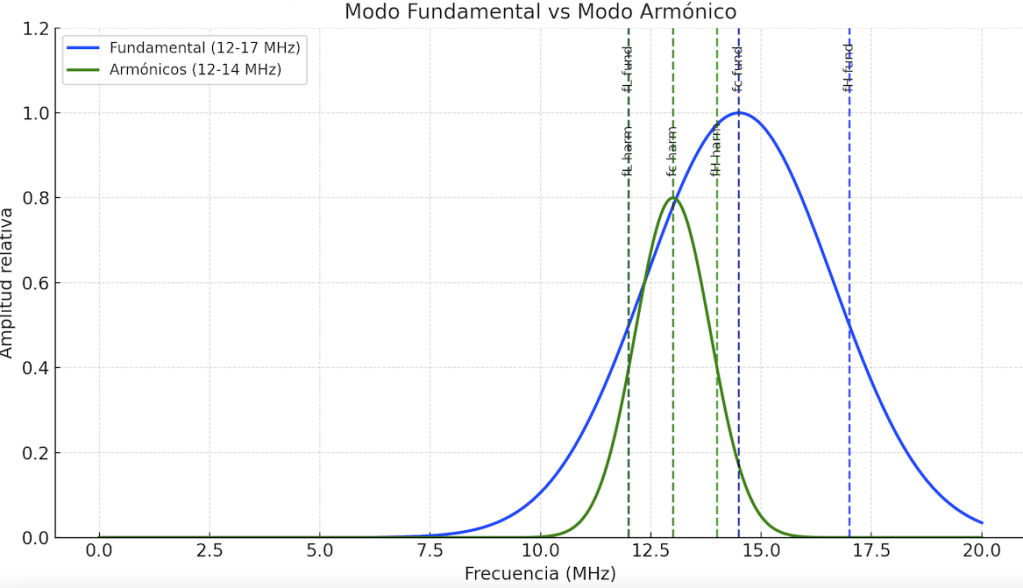 Ejemplo: si se reciben ecos a 12 MHz (2º armónico), la emisión se hace a ~6 MHz.