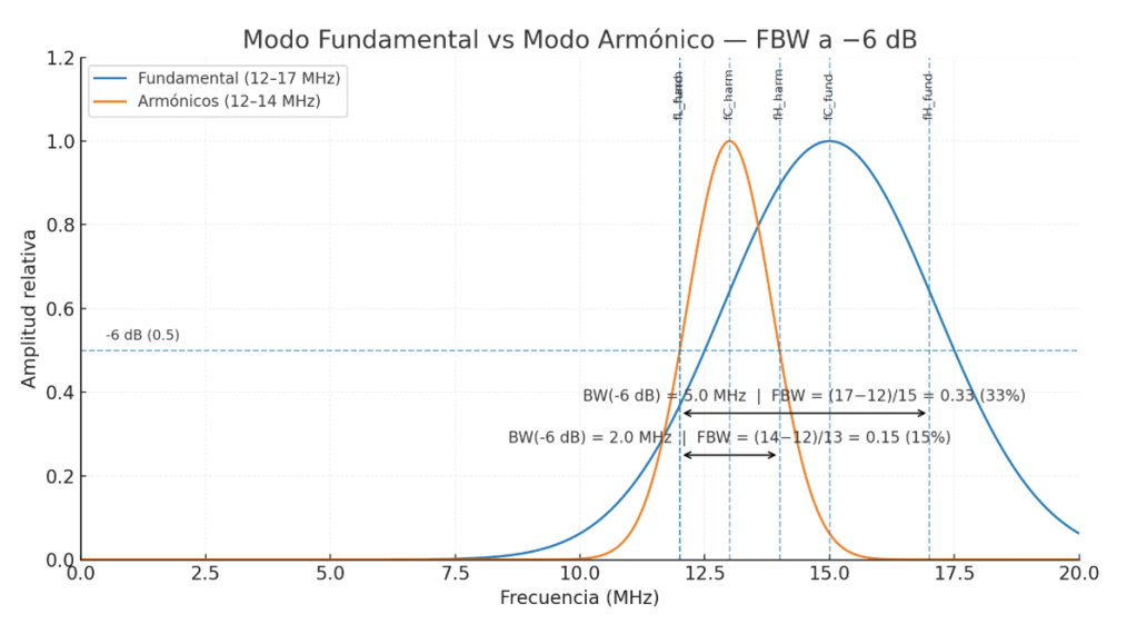 📌 Ejemplo: para recibir 12 MHz en armónicos, segundo armónico, la sonda emitirá aproximadamente a 6 MHz.