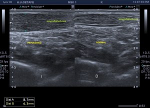 Estudiamos y demostramos la lesión o la normalidad en dos proyecciones, imagen 6, eje largo y eje corto de la zona y podemos comparar siempre con el lado contralateral, previsiblemente sano, dicho todo este conglomerado de ideas…las imágenes:
