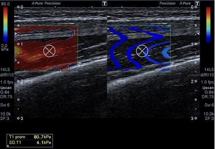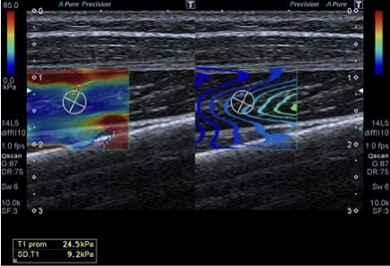 En conclusión, podemos decir que la elastografía SW muestra patología que aparecería como hallazgos normales con los métodos convencionales de ecografía musculoesquelética, como el modo 2D o Doppler. La ventaja de la elastografía es que podemos cuantificar con precisión estos hallazgos patológicos ya visibles en el elastograma.