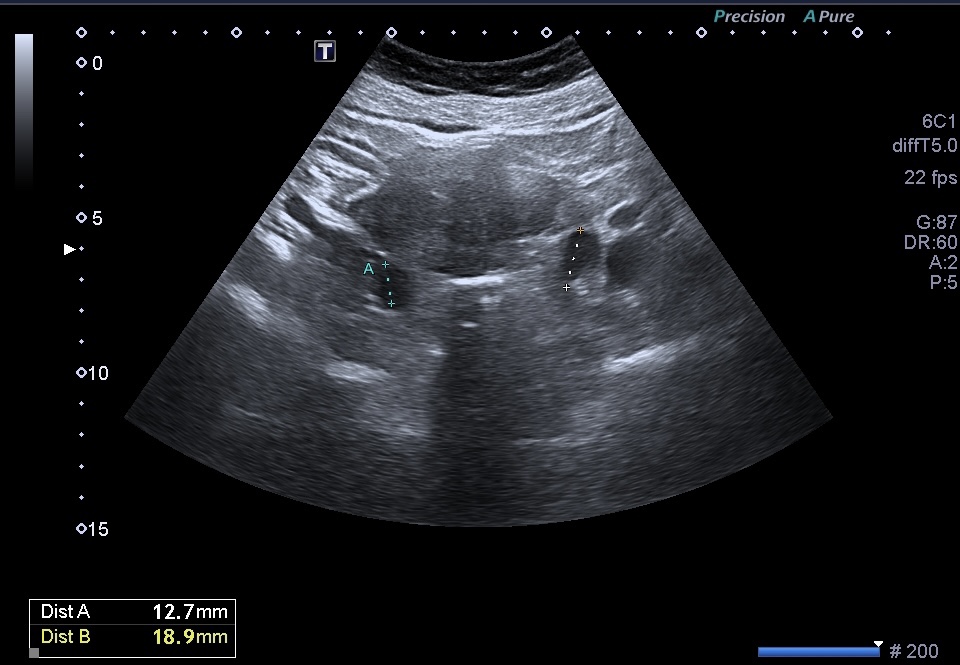 En este caso no existía hidronefrosis, pero sí el resto de la semiología patológica típica en este hallazgo con la particularidad de que era bilateral.