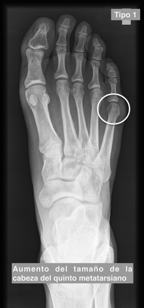 Paciente de 32 años que acude por dolor bilateral de ambos pies a la altura de la región lateral de la cabeza del quinto metatarsiano.