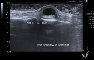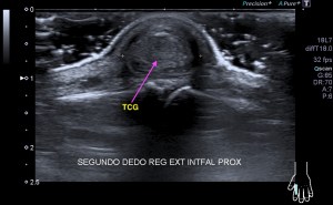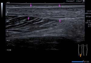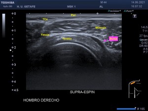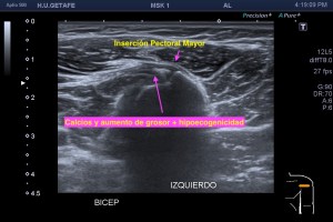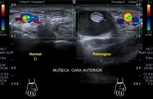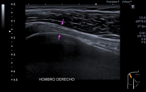 En la mayoría de los casos que el paciente comenta dolor en la parte postero lateral del brazo en el tercio medio la exploración ecográfica es normal, pero ojo si encontramos estas imágenes que vas a ver a continuación, debemos comentarlas y documentarlas ya que hablan por si mismas: