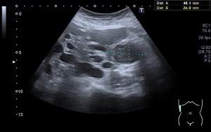 Vemos con muchísima asiduidad, es sin duda una de las figuras patológicas que más vemos en la exploración del Abdomen, los quistes renales.