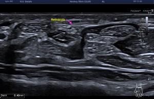 6. Retináculos:Es una estructura fibrosa cuya función es la de estabilizar otra estructura, como por ejemplo un tendón. Está, orientadas transversalmente al eje largo del tendón y su aspecto es hipoecogénico.
