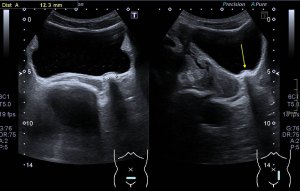 Ecográficamente los músculos digástricos en eje corto tienen semiología hipoecogénica, en aspecto de noche estrellada, como la de hoy, y en el eje largo en forma de penacho o en forma de plumas con las fibras alargadas y paralelas a la superficie.