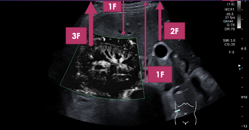 Durante la ecografía obstétrica, es esencial mantener el TI lo más bajo posible, especialmente durante el primer trimestre, cuando el desarrollo fetal es más susceptible a los efectos térmicos.