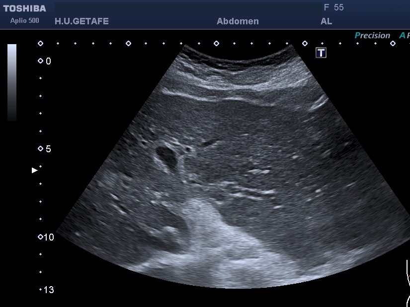 Textura del hígado: En casos de fibrosis, el hígado puede aparecer con una textura más «gruesa» o «irregular» en comparación con un hígado sano.