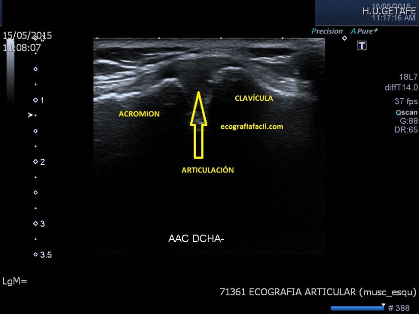 Tocamos la espina escapular, cerca del húmero en el teórico lugar de la inserción del Infraespinoso y colocamos la sonda como os marco en la imagen, siempre debajo de la espina escapular, entonces tienes que buscar estas dos imágenes que te pongo a continuación juntas: