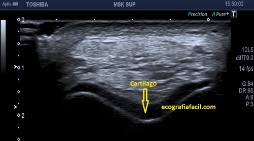 El Labrum posterior, pseudotriangular y también hiperecogénico.